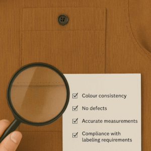 Each individual overshirt is inspected and verified, from fabric and materials to finished product. It involves checking for defects, ensuring accurate measurements, verifying color consistency, and ensuring compliance with labeling requirements.